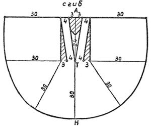 Провести вертикальную линию, вверху поставить точку А (см. рис.).